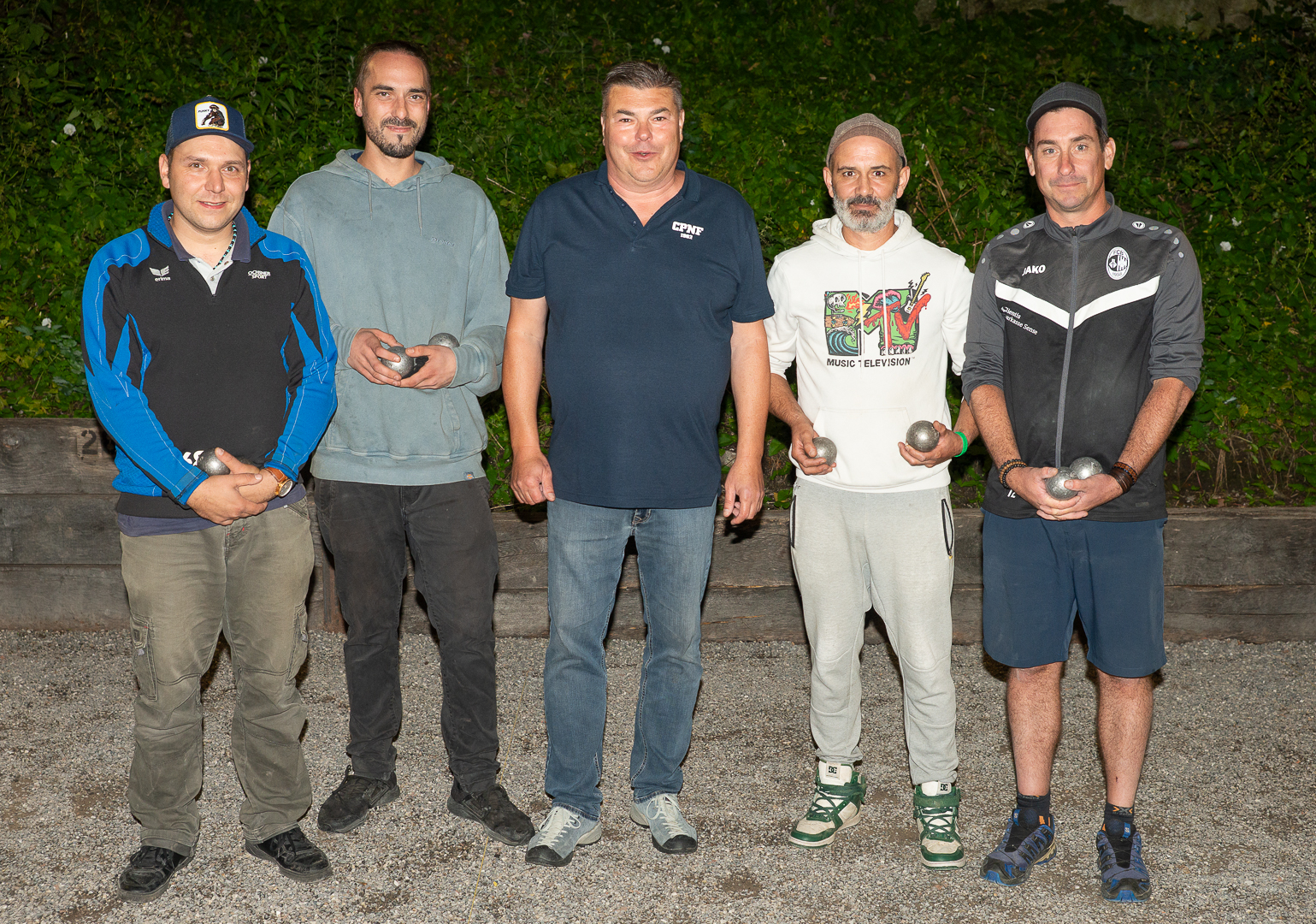 Après un début de matinée légèrement pluvieux, le temps s’est mis au beau pour une magnifique journée sous les marronniers. Très beau concours, dans une belle ambiance avec des équipes sympa. Et un excellent repas de midi pour revigorer tout le monde. Des parties disputées, avec plusieurs mènes de départage nécessaires ont fait que le tournoi, qui s’est achevé par une finale gagnée par l’équipe Pedro Boghalo – David Neuhaus face à la paire Andrea Pokorny – Sasha Kupferschmied, a pris fin vers 22h30 seulement.